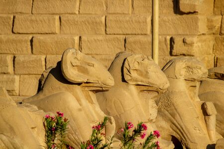 Closeup of ram statue in the sun at the entrance of Karnak temple at Luxor in Egypt