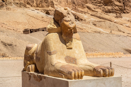 Ruins of ancient Sphinx in Hatshepsut Temple of Luxor, Egypt