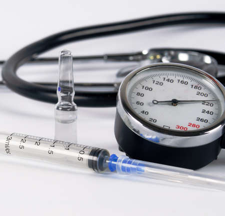 The medical equipment - manual and electronic blood pressure monitor. Not in isolation