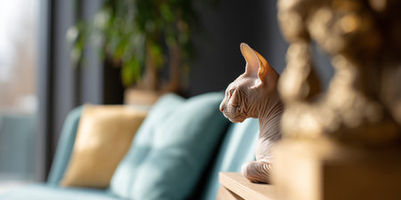 Distinctive Sphynx Cat with Unique Skin and Exotic Features, Alertly Observing Its Surroundings