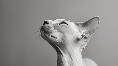 Portrait of a cute cat looking away. Don Sphynx breed cat. Generative AI