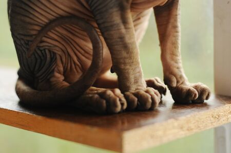 Bald cat of the Canadian Sphynx breed. Chocolate color