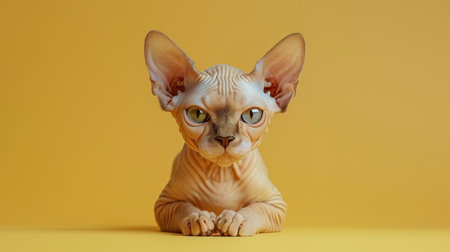 Hyperrealistic sphynx cat illustration on vibrant yellow background with space for custom text, banner