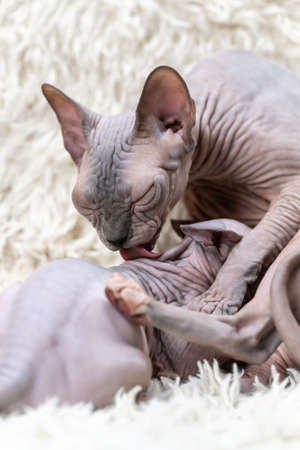 the kittens canadian sphinx. and hairless cats play.