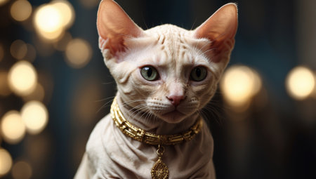 AI Generated. Noble Kitten Clipart A Cream Sphinx Cat Sits Proudly on a Pedestal