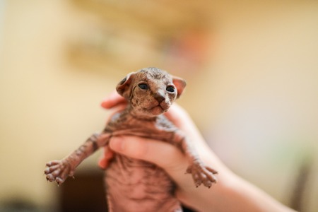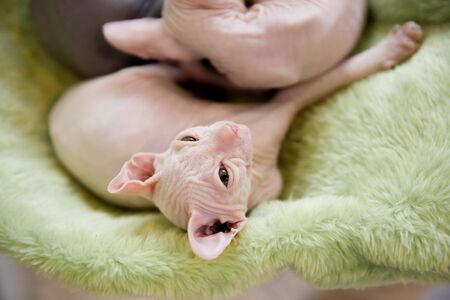 Sphynx cat - a small two-month-old kitten. Hairless cat breed