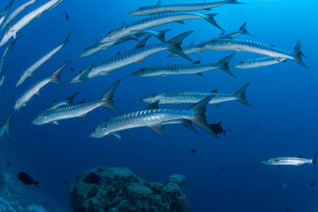 Great barracuda (Sphyraena barracuda) are awesome predators of tropical waters. Maldives, April