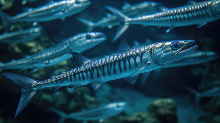 Barracudas fish swimming fresh underwater pictures AI Generated Image