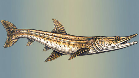 This spectacular Alligator gar (Atractosteus spatula) swims in the freshwater. Generative AI