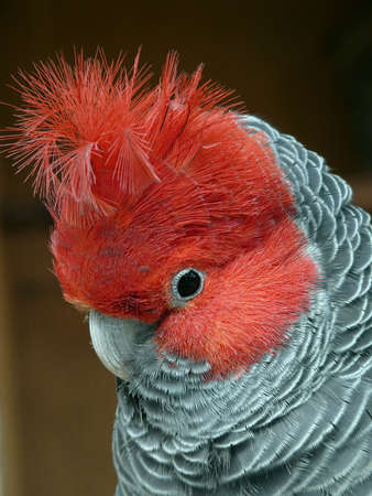 this is a close up of a female gang-gang parrot