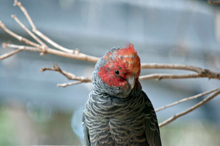 Red-crested Cockatoo, Gang Gang Male, single bird on branch,