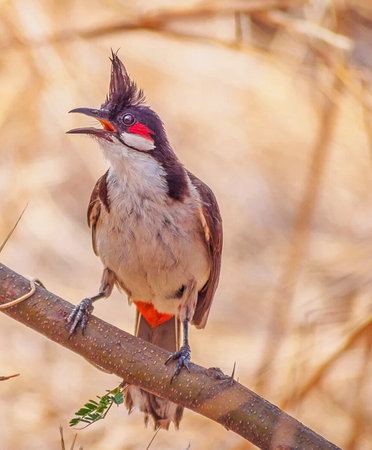 Red-whiskered Bulbul (Pycnonotus goiavier) perched on a branch