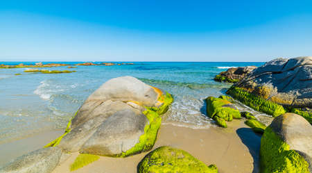 Rocks in Orri beach shoreline in the springtime. Sardinia, Italy