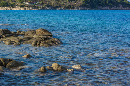 Turquoise Greek sea and some underwater rocks in vicinity of Chalkidiki