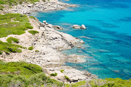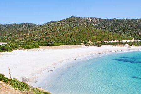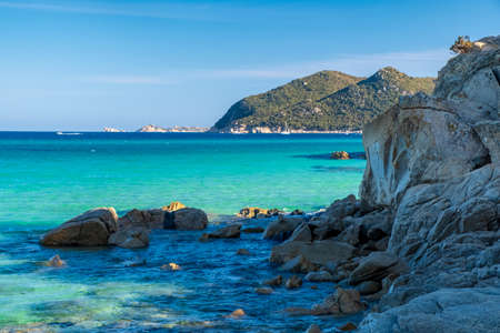Campus beach in Villasimius. Sardinia, Italy. The beautiful coastline of Campus beach (Spiaggia di Campus) and its turquoise sea, Sardinia, Italy.
