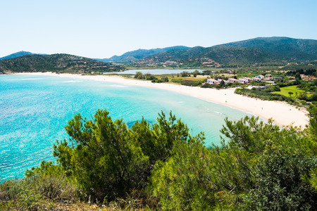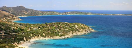 Panorama of the wonderful beaches of Chia, Sardinia, Italy.