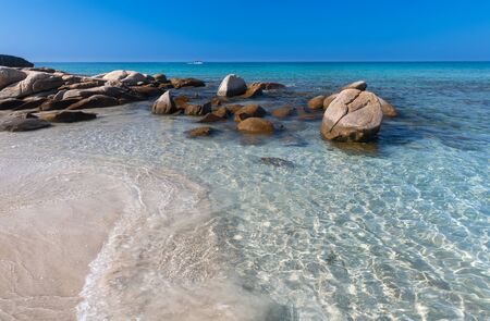 Crystal clear water in Scoglio di Peppino beach in Costa Rei. Sardinia, Italy