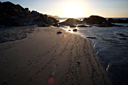Sun shining over Porto Giunco coastline. Sardinia, Italy