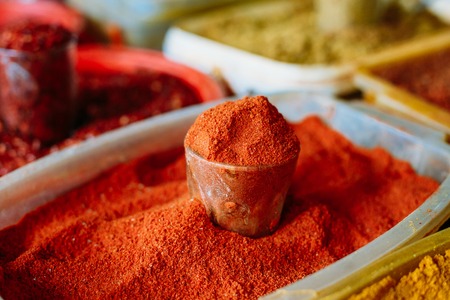 Oriental colorful spices in a traditional Turkish Spice Bazaar