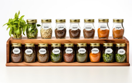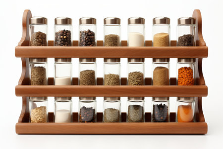 Realistic 8k Wooden Spice Rack in Action On White Background Generative By Ai.