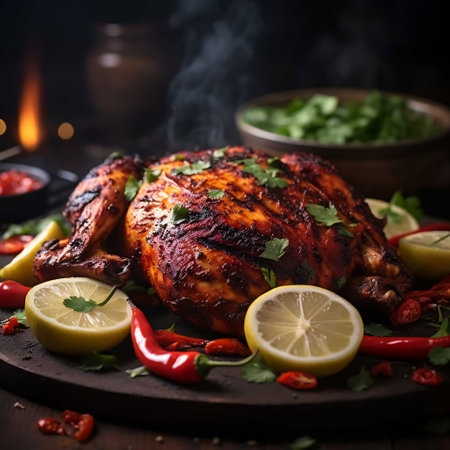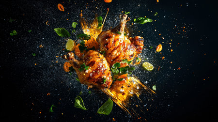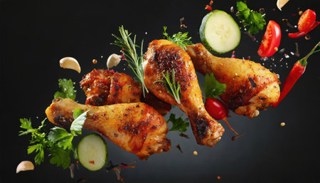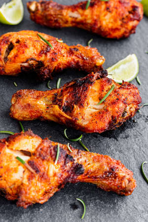 Grilled chicken legs with spices, parsley, garlic and lemon. Barbecue chicken concept