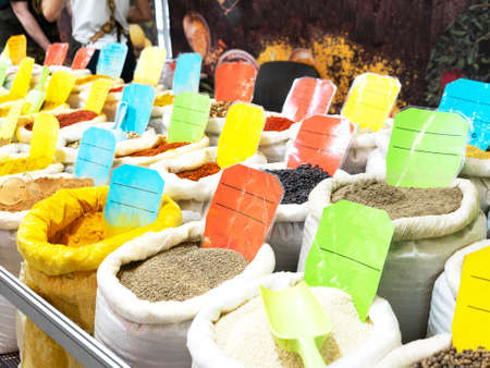 Colorful spices at local market in Old Jerusalem. Israel