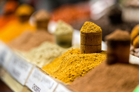 Spice Market a colorful Indian spice market with piles of spices
