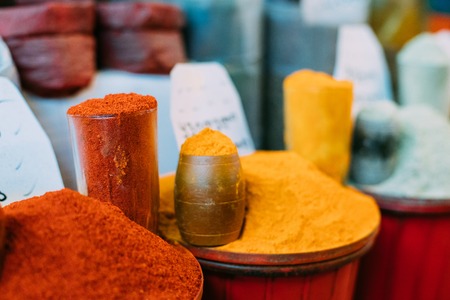 Oriental colorful spices in a traditional Turkish Spice Bazaar