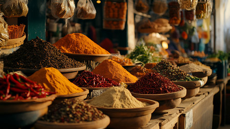 variety of spices in the oriental market. Generative AI