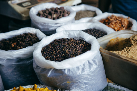 oriental spices in pouches on the market