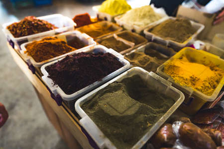 Variety of spices on the arab street market
