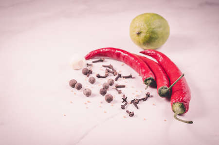 spices for cooking on a white marble background / spices for cooking on a white marble background. Copy space