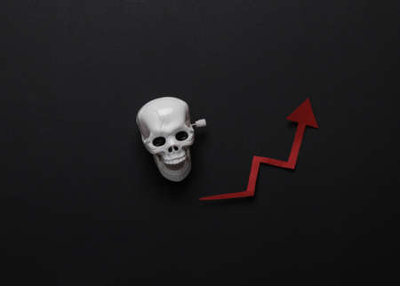 Increase in mortality. statistics. Skull with growth arrow on black background