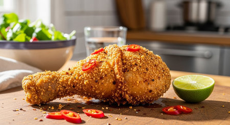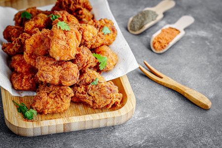 The American fried chicken close up image for food content.
