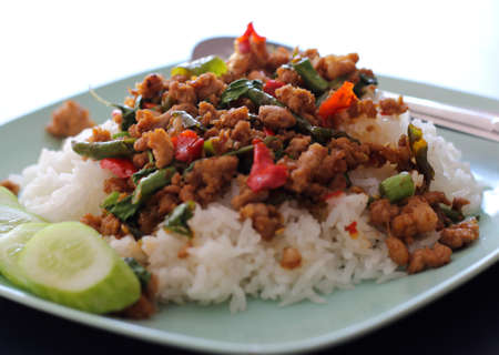 Thai spicy food, stir fried pork with basil