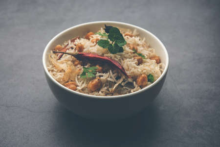 Chana Pulao or Pulav or pilaf cooked with Basmati Rice and chickpeas with spices