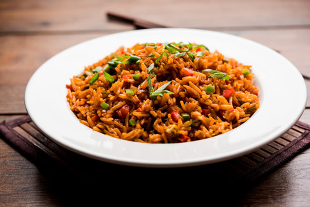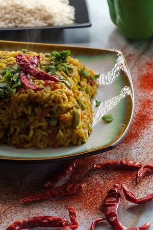 Tawa Pulao/Pulav/Pilaf/Pilau is an Indian Street Food made using basmati rice, vegetables and spices. Selective focus
