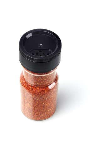 Bottle of Red Chilli Powder on White Background