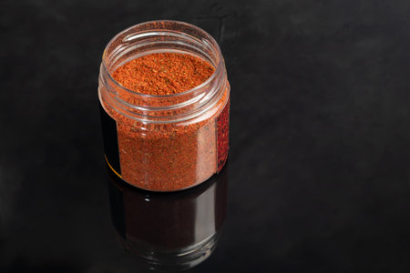 Cayenne pepper pour from Bottle on black,Flying Cayenne pepper