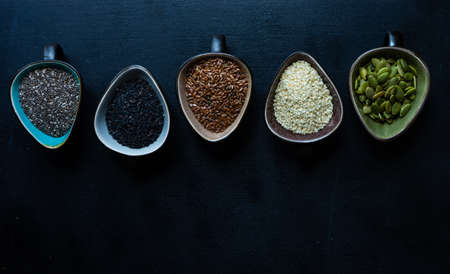 Different seeds on a bowl