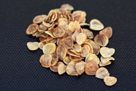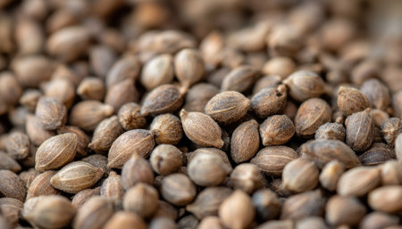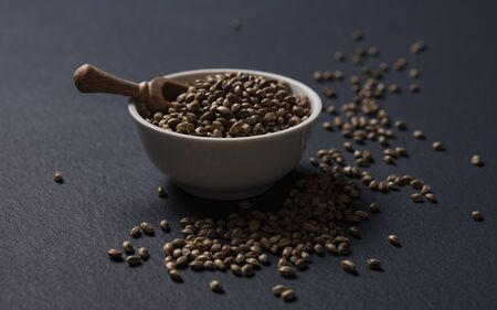 hemp seeds scattered dark blackground close up