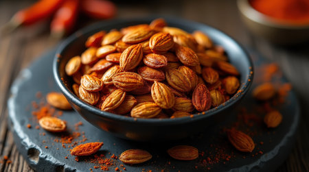 spiced pumpkin seeds on a ceramic plate, created with generative ai