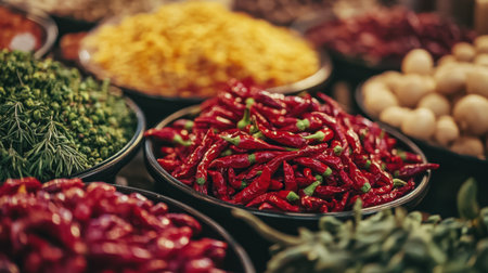 Explore the vibrant array of fresh spices and ingredients perfect for enhancing your culinary creations. Ideal for cooking enthusiasts who love bold flavors.