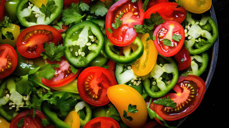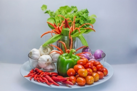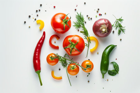 Vegetable food organic pepper tomato basil assortment vegetarian concept