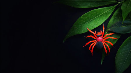 A bold red spider perches majestically on a spiky, ruby-hued fruit amid vibrant green foliage This close-up captures the captivating interconnections and chromatic wonders of the natural world AI Generative
