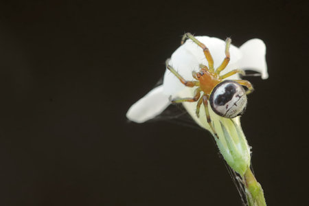 spider on white flower macro close up background fifty megapixels