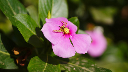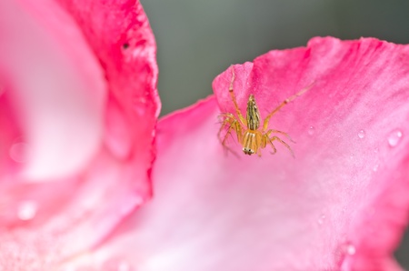 spider on a pink flower in the wild, close-up