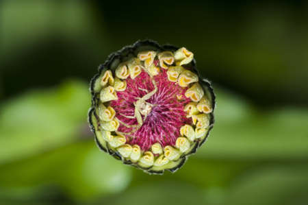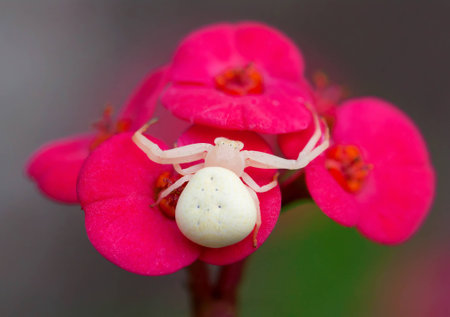 crab spider stting in ambush in a euphorbia flower
