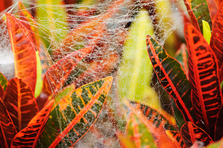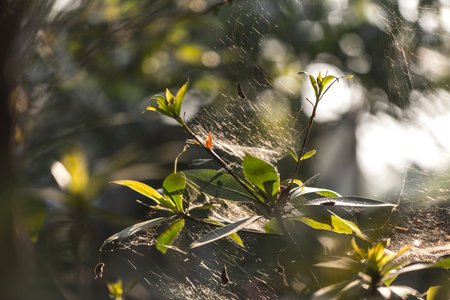 Close-up of a mysterious spider net. spider webs, Sensitive Focus