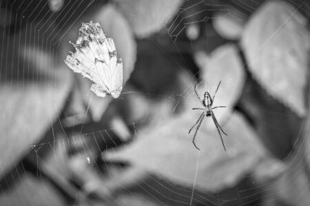 Big spider caught prey in its web